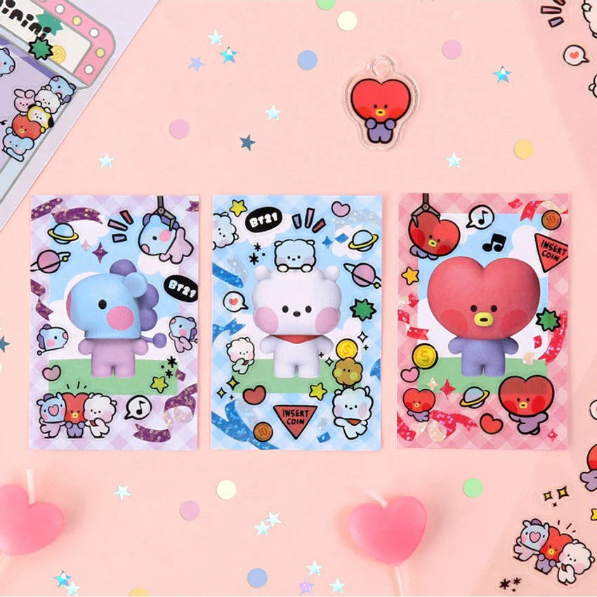 Get ready to decorate with cuteness overload! The BT21 Clear Stickers feature your favorite BT21 character in an adorable claw machine theme—plus stars, planets, hearts, and more! Each sheet includes around 35 PVC stickers in a variety of sizes, perfect for bullet journaling, scrapbooking, or adding some K-pop flair to your everyday ✨