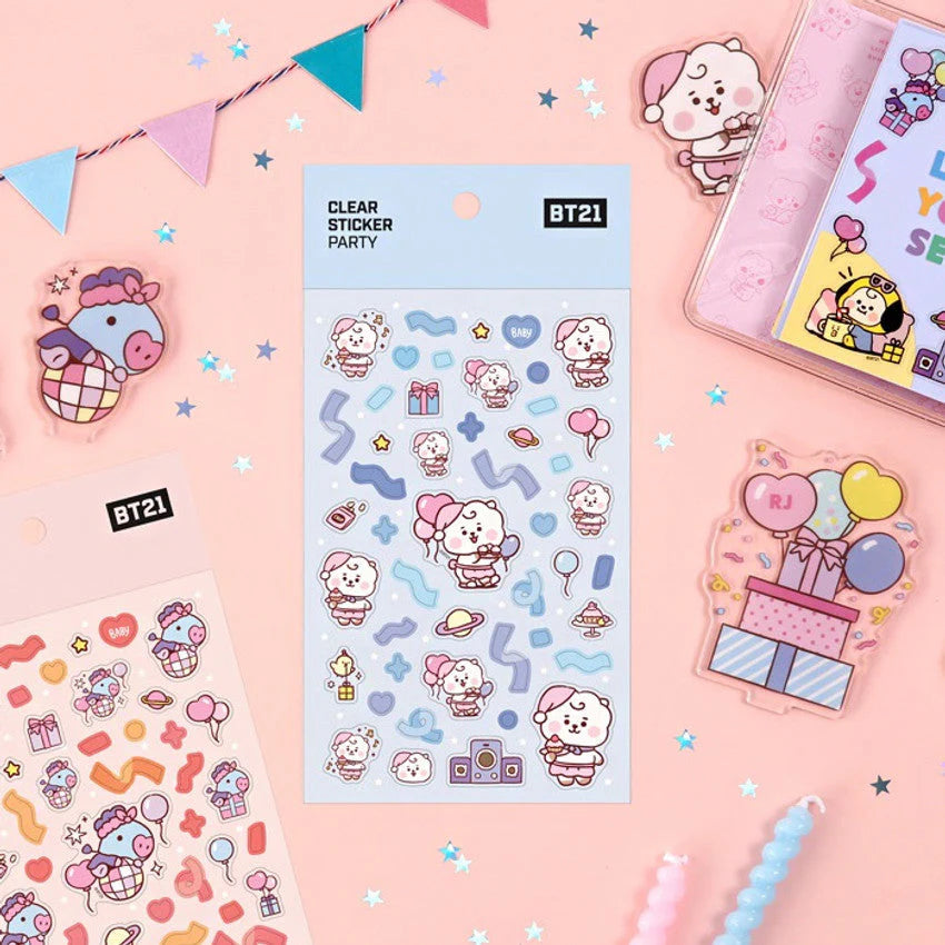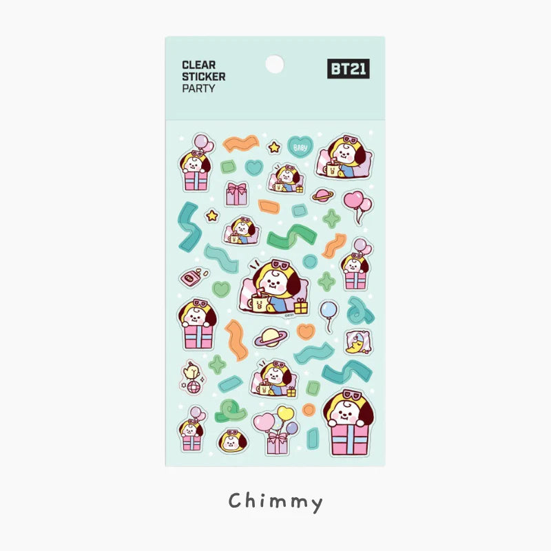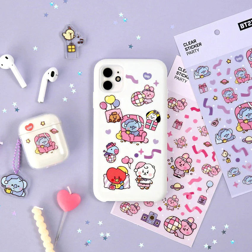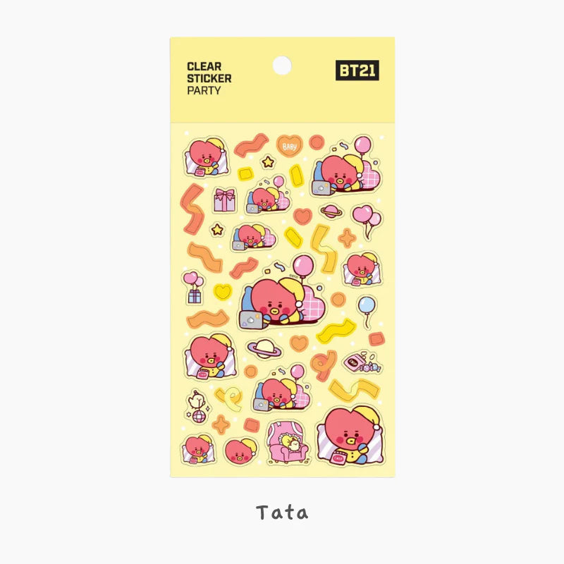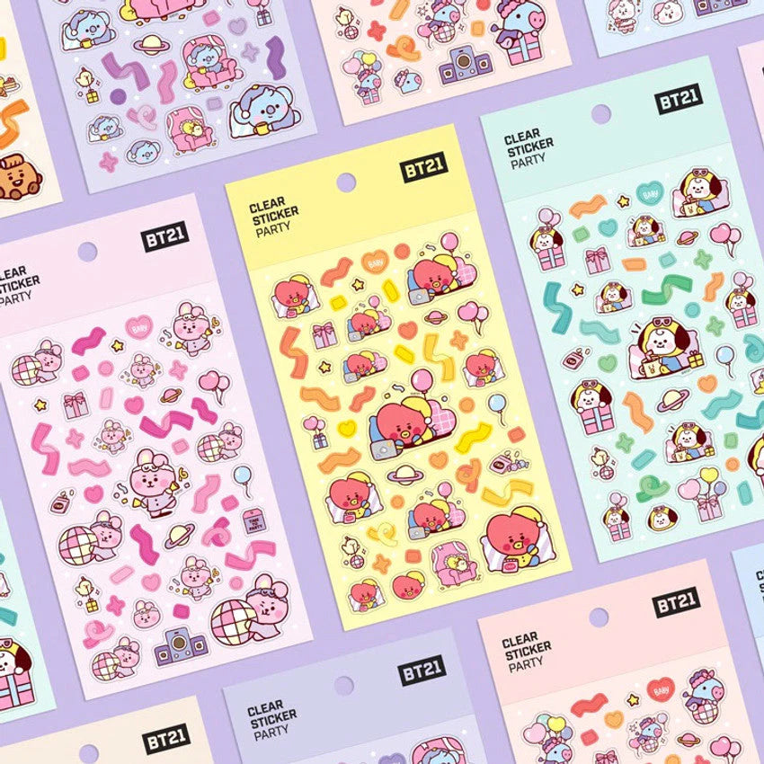 Celebrate in style with the BT21 Baby Party Clear Stickers! Featuring adorable baby versions of your favorite BT21 characters, these transparent stickers are bursting with confetti, balloons, ribbons, and stars—perfect for adding playful charm to your planner, scrapbook, or journal!