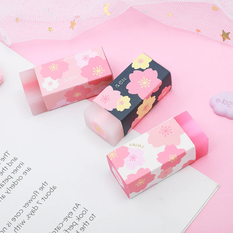 ✔️ Elegant Design – Featuring a delicate cherry blossom flower pattern that wraps around the entire eraser.