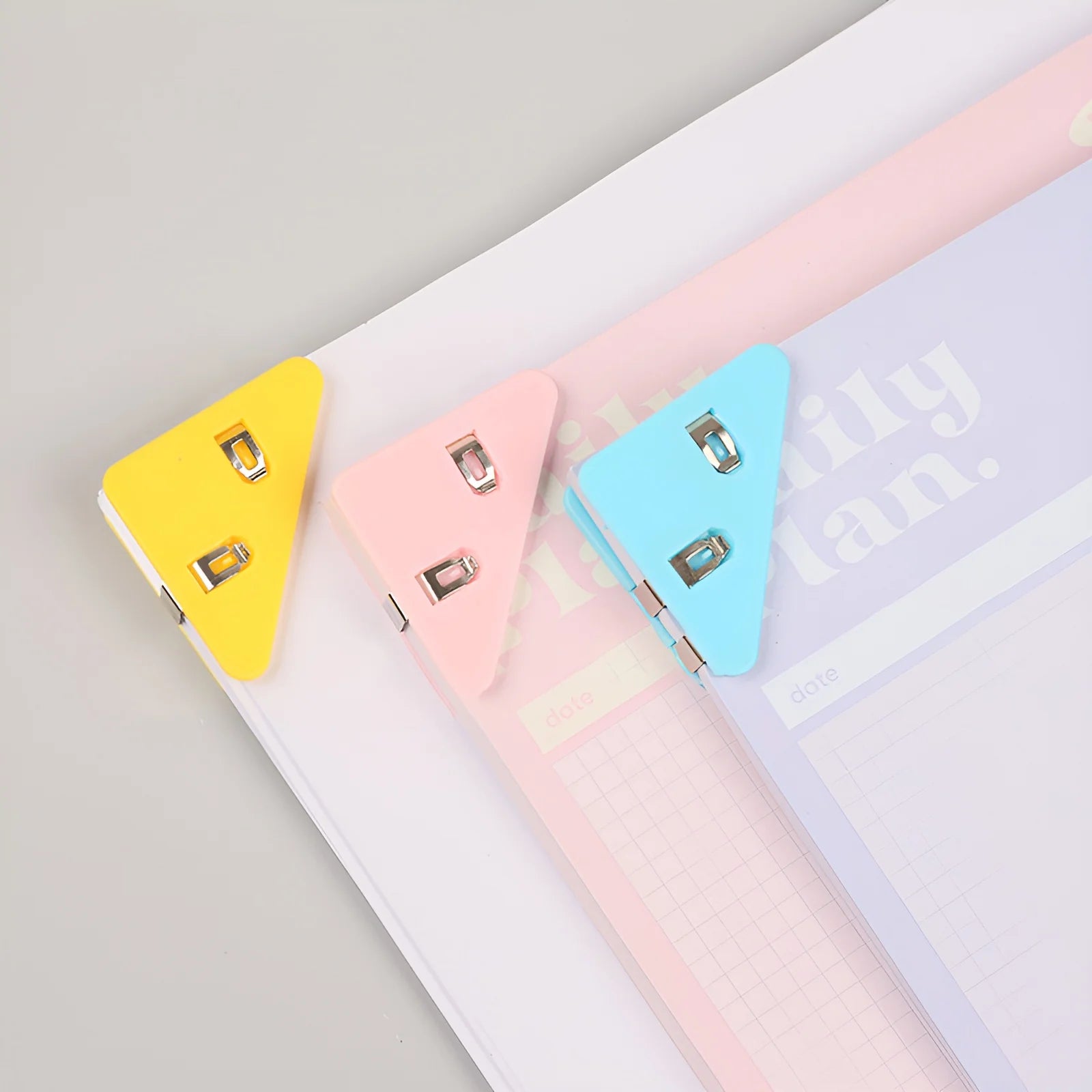 Keep your papers perfectly in place with the Color Pop Corner Paper Clips! Designed with a smart triangular shape and a translucent splash of color, these eco-friendly clips are gentle on paper and strong enough to hold up to 50 sheets—no staples, no slipping, no damage! Perfect for organizing, color-coding, or simply adding a little joy to your stack. ✨