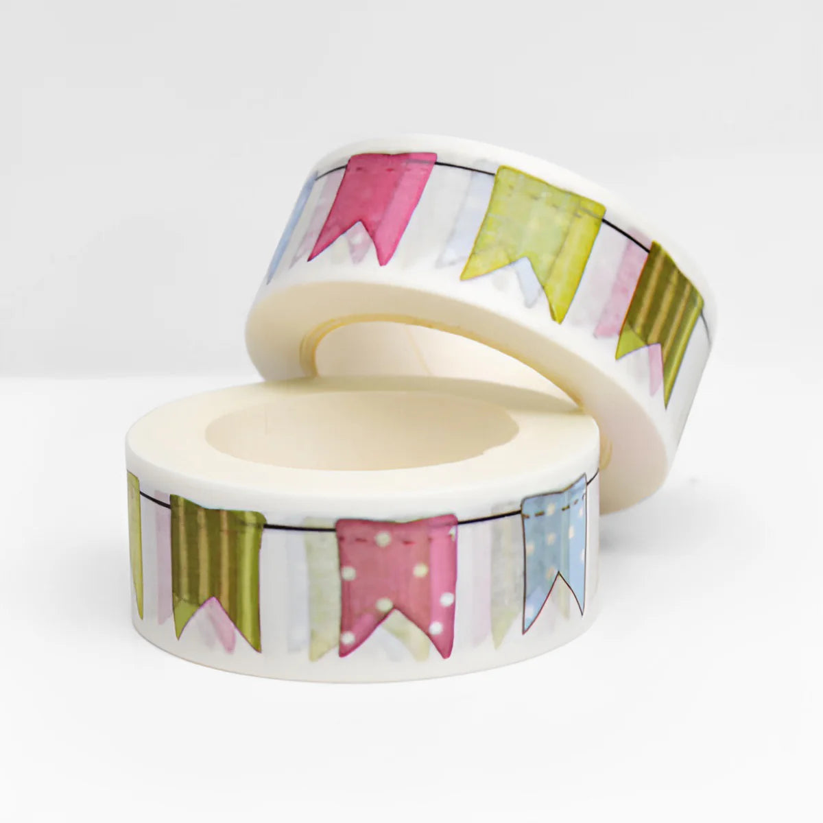 Transform your notebook, planner, or creative projects with the Colorful Flags Washi Tape! Featuring a charming garland of flags in various colors and patterns, this tape is perfect for marking special dates, jazzing up your journal, or decorating for birthdays, anniversaries, and celebrations.
