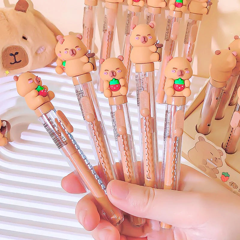 Add a dose of charm to your pencil case with this Cute Capybara Retractable Pen-Style Eraser! Whether he’s holding a strawberry or bubble tea, this little buddy is here to keep your notes neat and your workspace adorable 🧋