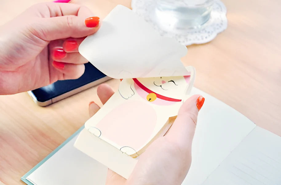 Invite good fortune into your daily plans with this adorable Maneki Neko (Lucky Cat) Sticky Memo Pad! Featuring the iconic lucky cat design, each note is perfect for jotting down reminders, to-do lists, or messages—all while adding a charming touch to your desk.