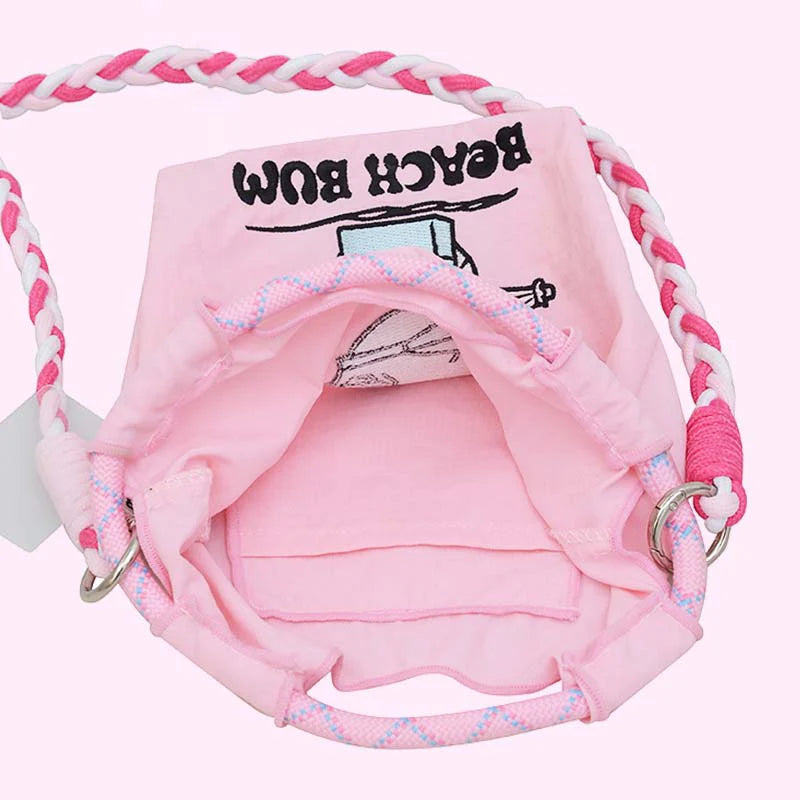 Breeze through your day with the Snoopy Chill Vibes Sling Bag in soft pink! This mini-sized bag is perfect for carrying just the essentials while keeping your look effortlessly cute. Featuring an embroidered Snoopy all set for the beach with his umbrella, cap, and bag, plus the phrase "Beach Bum" for the ultimate laid-back vibe.