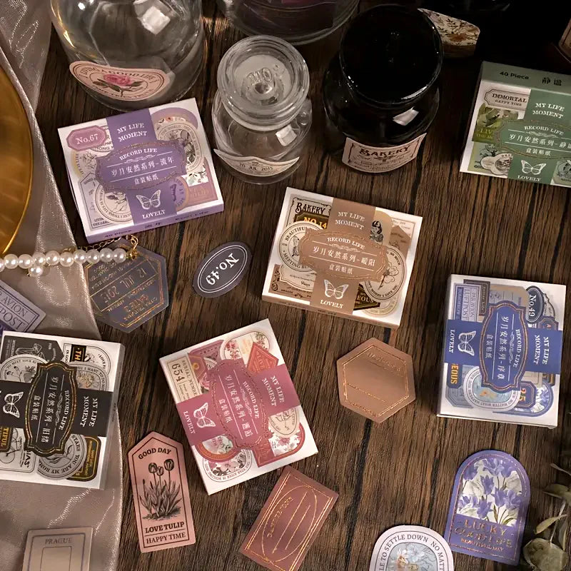 ✔ 40 Unique Stickers – Includes tags, seals, numbers, and ephemera-inspired pieces ️