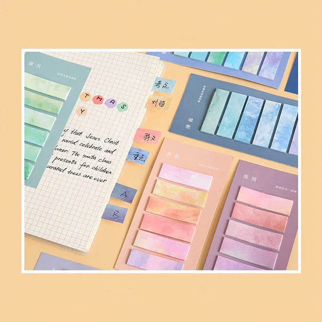 Add a splash of color to your notes, journals, and study sessions with the Watercolor Index Sticky Notes! With soft tie-dye hues and a practical tab shape, these sticky notes make organizing your ideas more vibrant and fun.