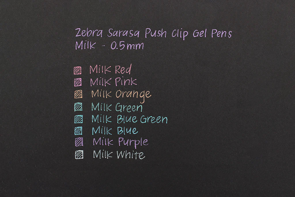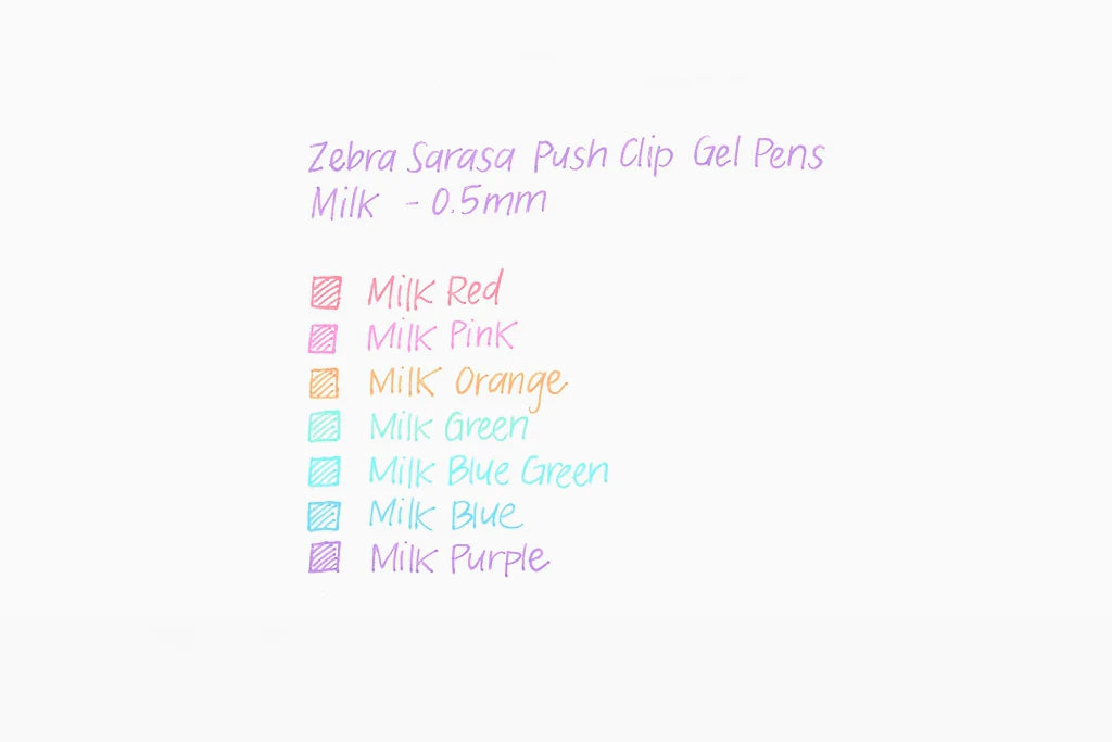 Indulge in soft, dreamy hues with the Zebra Sarasa Clip Milk Color Gel Pen Set! This pastel-perfect collection features 8 smooth-flowing gel pens in unique “milk” shades—from calming greens to cozy purples and candy-like pinks. The 0.5 mm tip gives you crisp, clean lines with every stroke, whether you're journaling, doodling, or note-taking. With a comfortable grip and reliable push clip design, these pens are perfect for creative expression on light or dark paper. ️